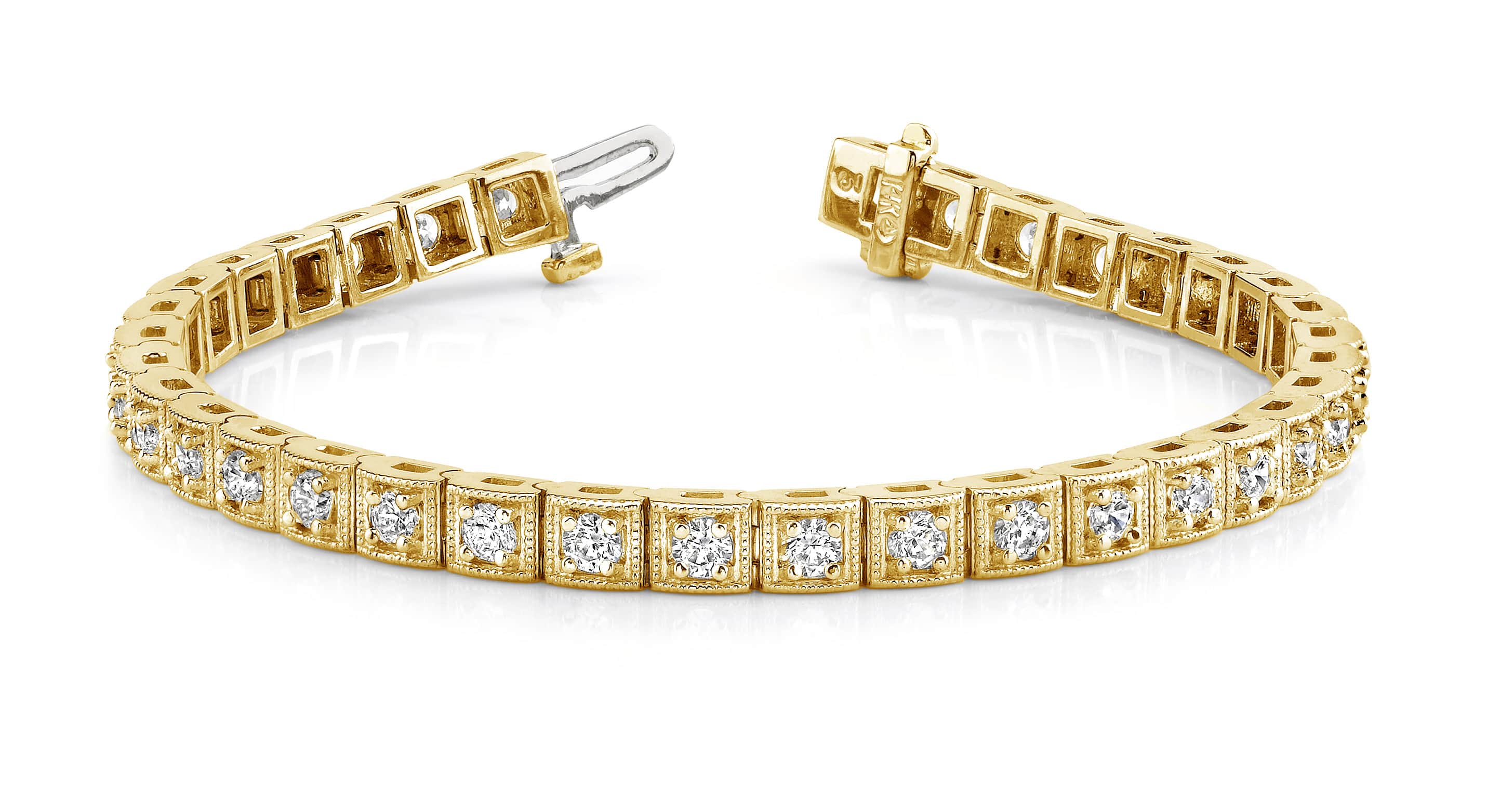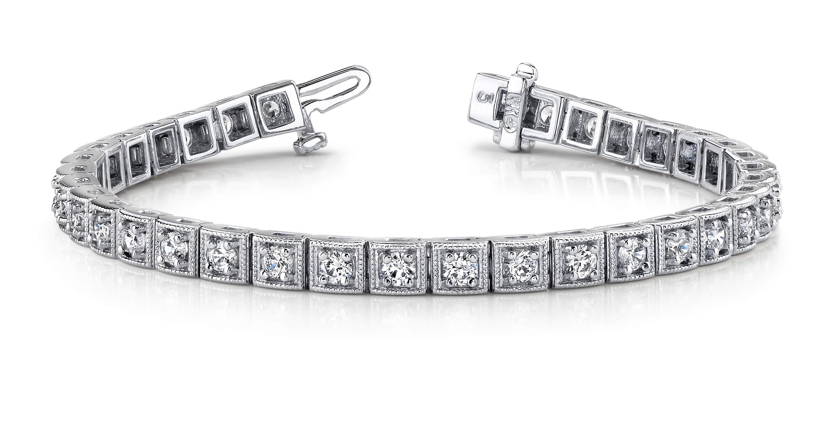 Antique Square Link Diamond Bracelet 1.55 Carat Total Weight