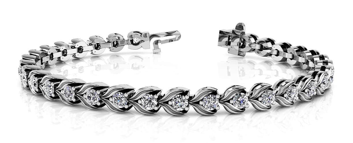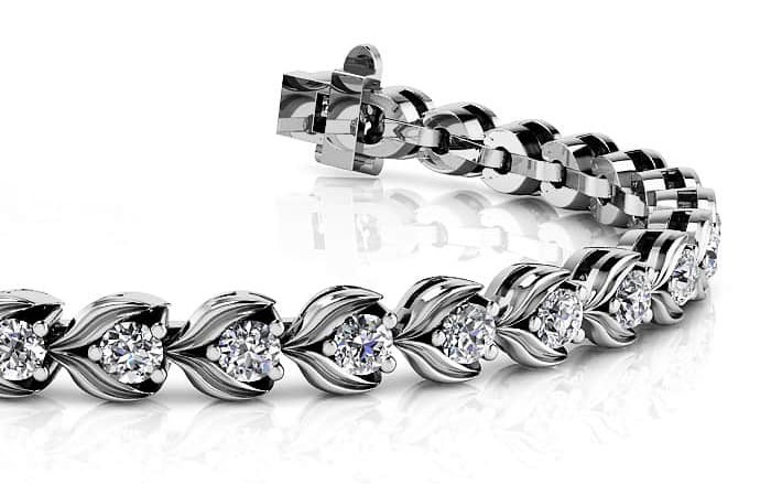 Diamond Flower Link Tennis Bracelet 2.62 Carat Total Weight