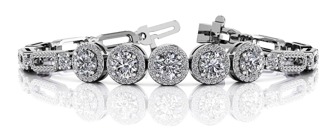 Enchanting Five Halo Diamond Bracelet 4.9 Carat Total Weight