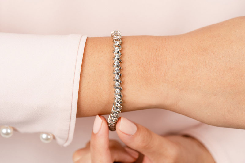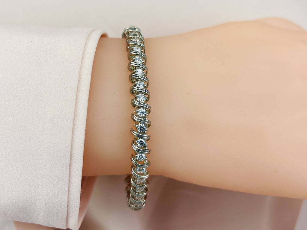 Faceted Spiral Link Diamond Bracelet 1.0 Carat Total Weight