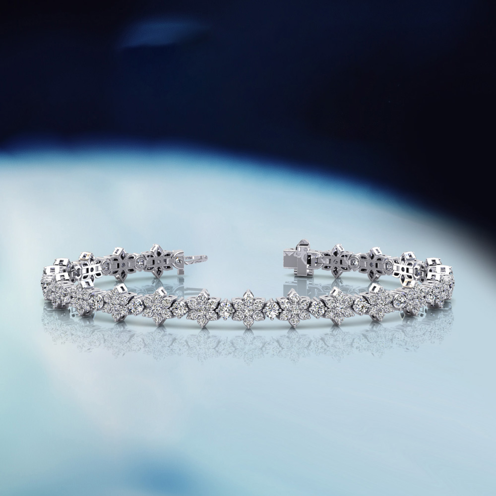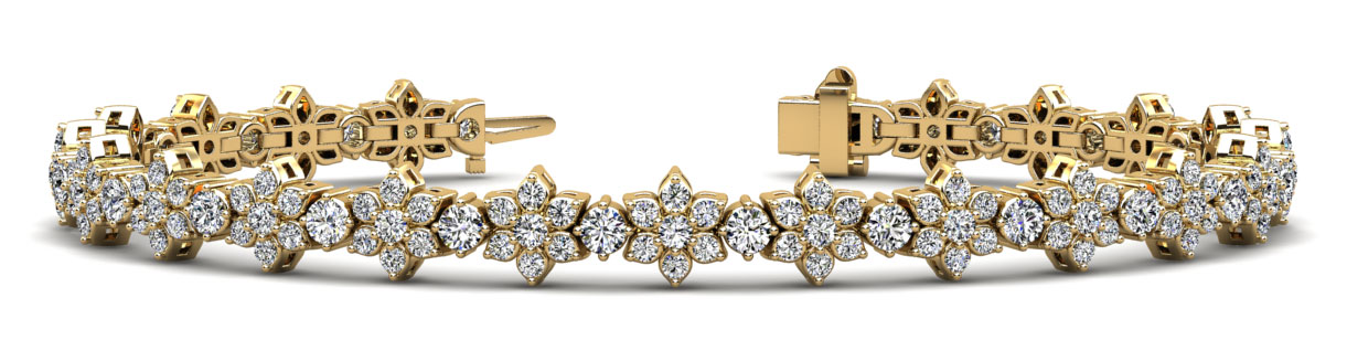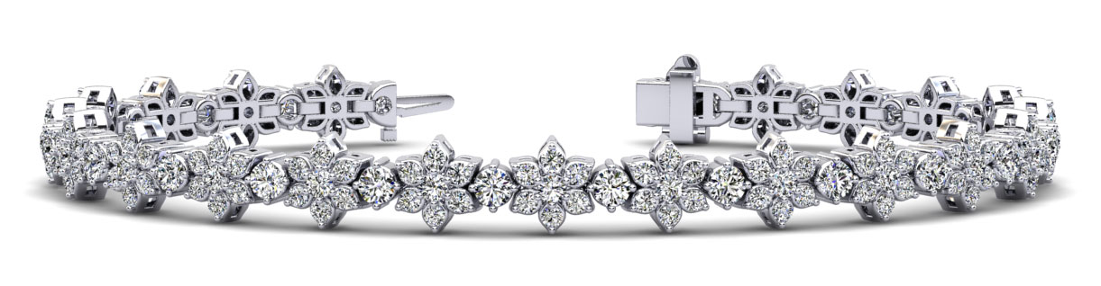 7-Inch Flower Link Bracelet with Round Diamonds Center Accents 2.27 Carat Total Weight