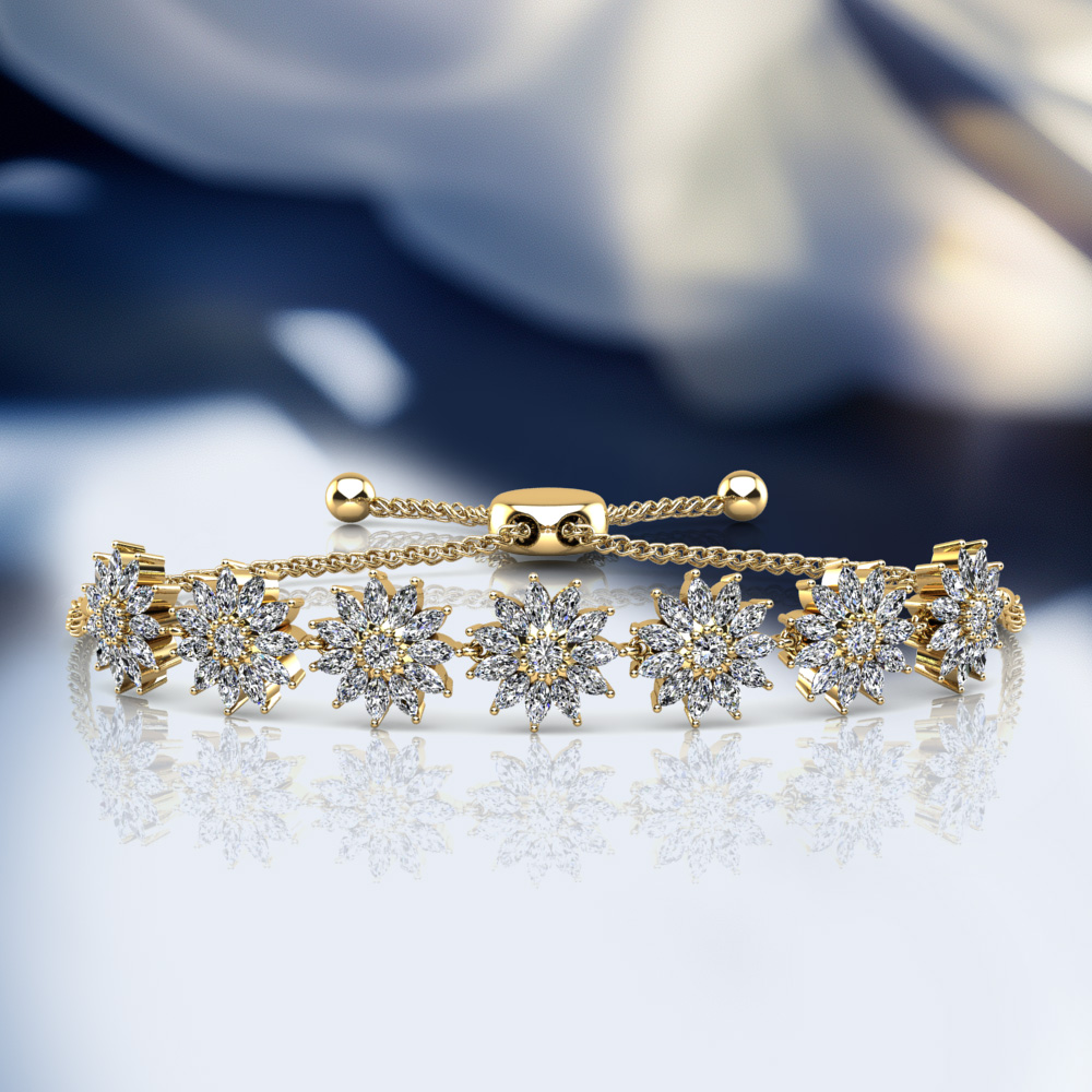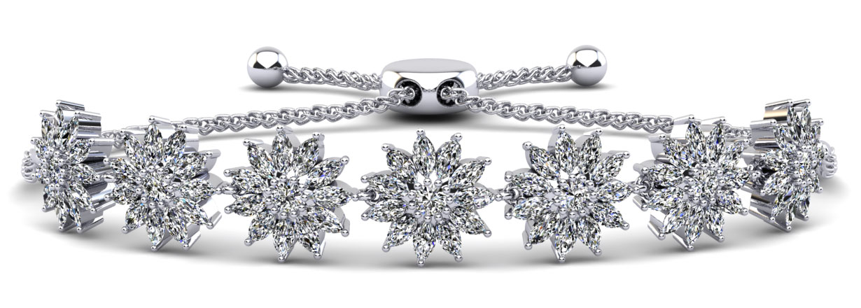 Marquise Diamond Flower Bracelet with Adjustable Chain 9.2 Carat Total Weight