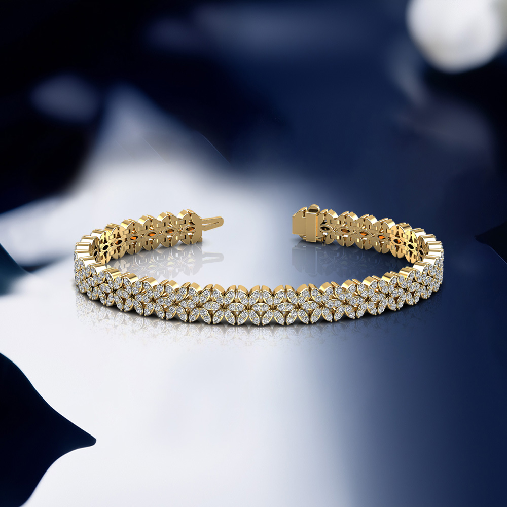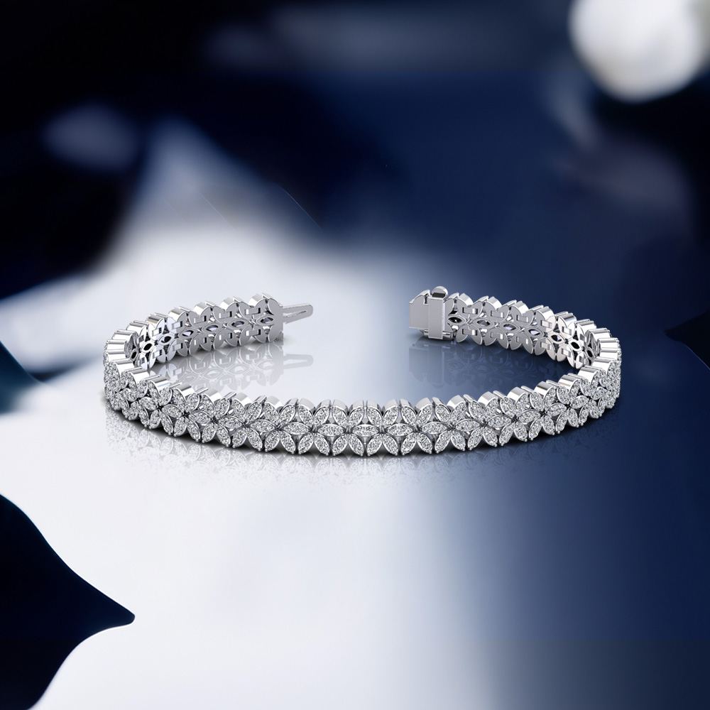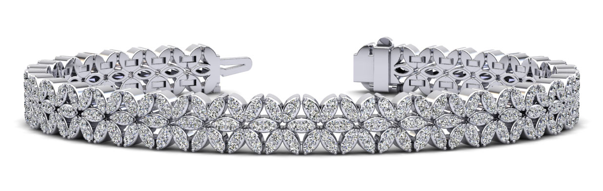 7-Inch Marquise Inspired Diamond Bracelet with Round Diamonds 3.04 Carat Total Weight