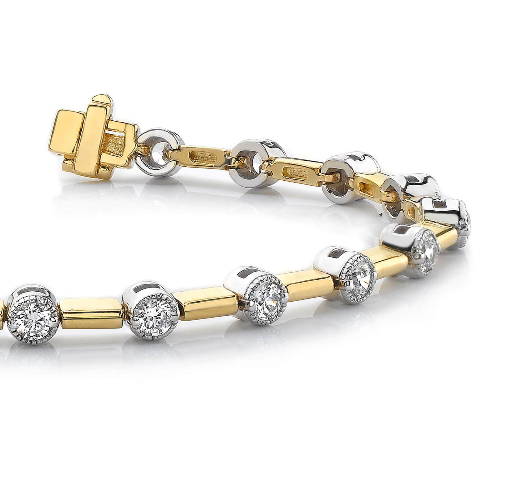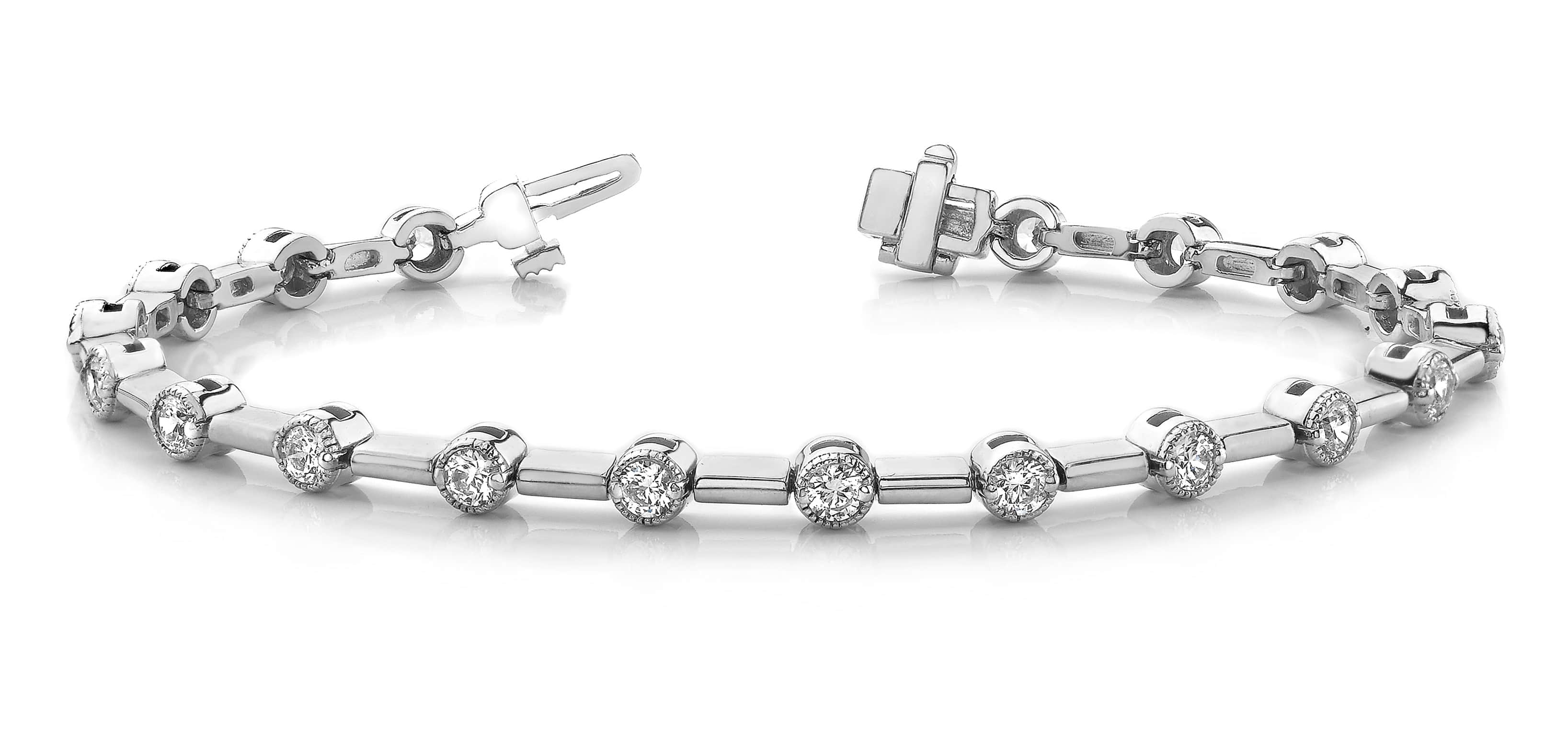 Round Millgrain Diamond Column Link Bracelet .90 Carat Total Weight