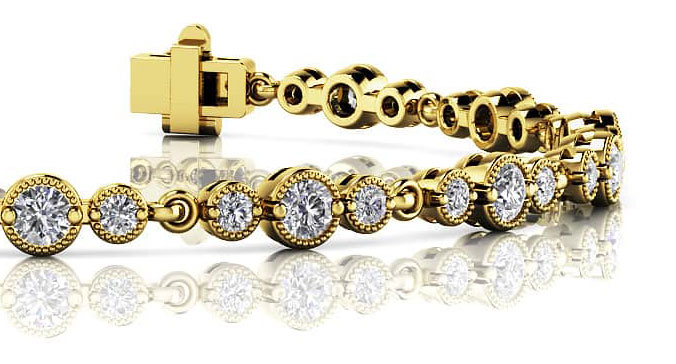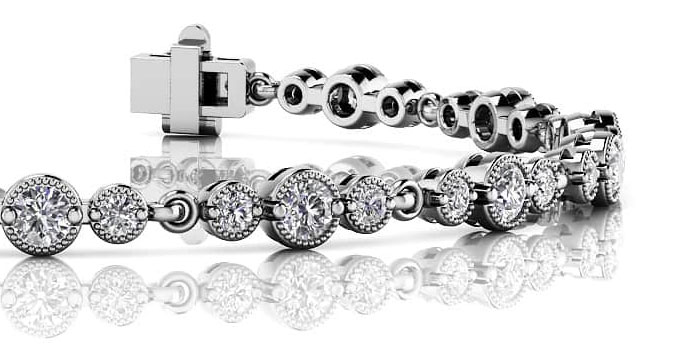 Vintage Milgrain Three Diamond Chain Link Bracelet 2.39 Carat Total Weight