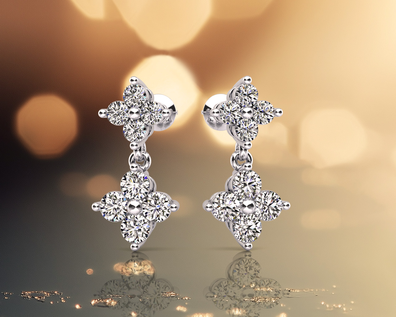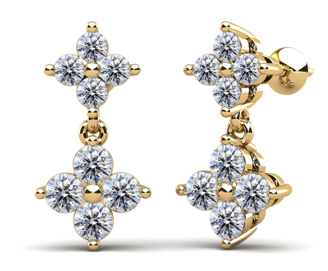 Elegant Diamond Drop Earrings with Dual Clusters 1.5 Carat Total Weight