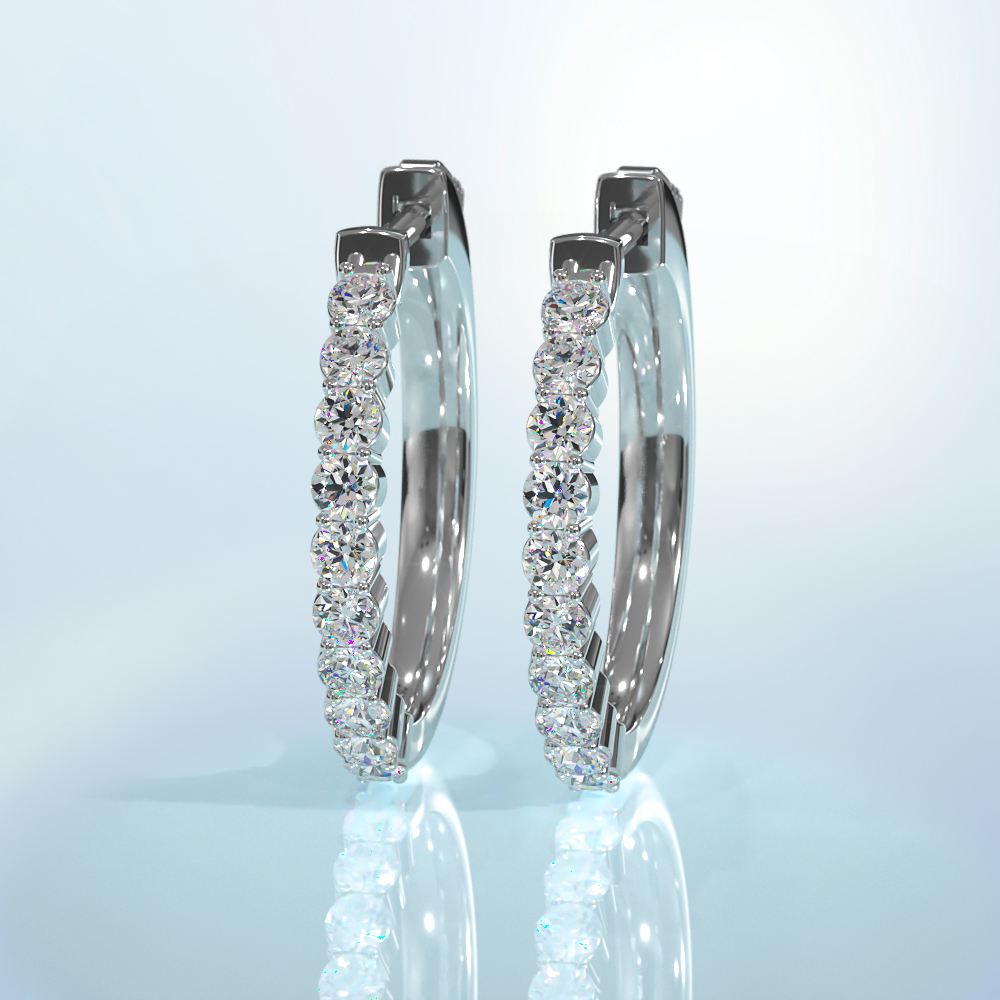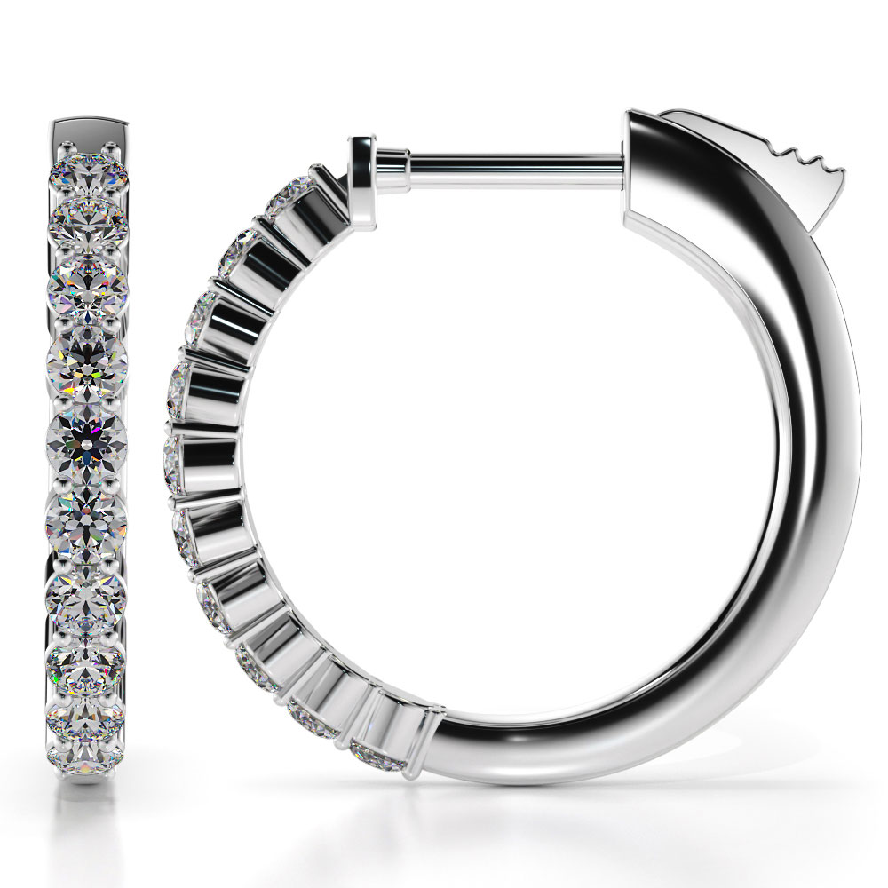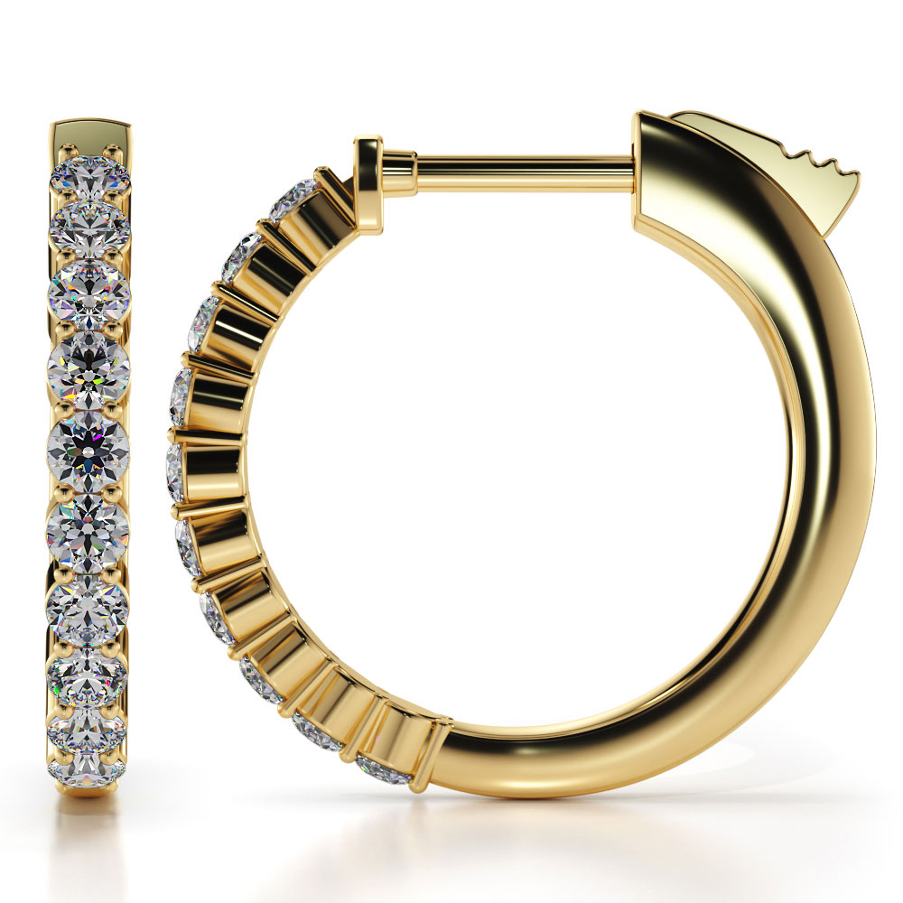 Huggie Elegant Diamond Hoop Earrings with Front Set Stones 3/8 Carat Total Weight