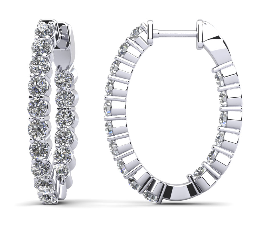 Oval Shaped Petite Classic Diamond Hoop Earrings .90 Carat Total Weight