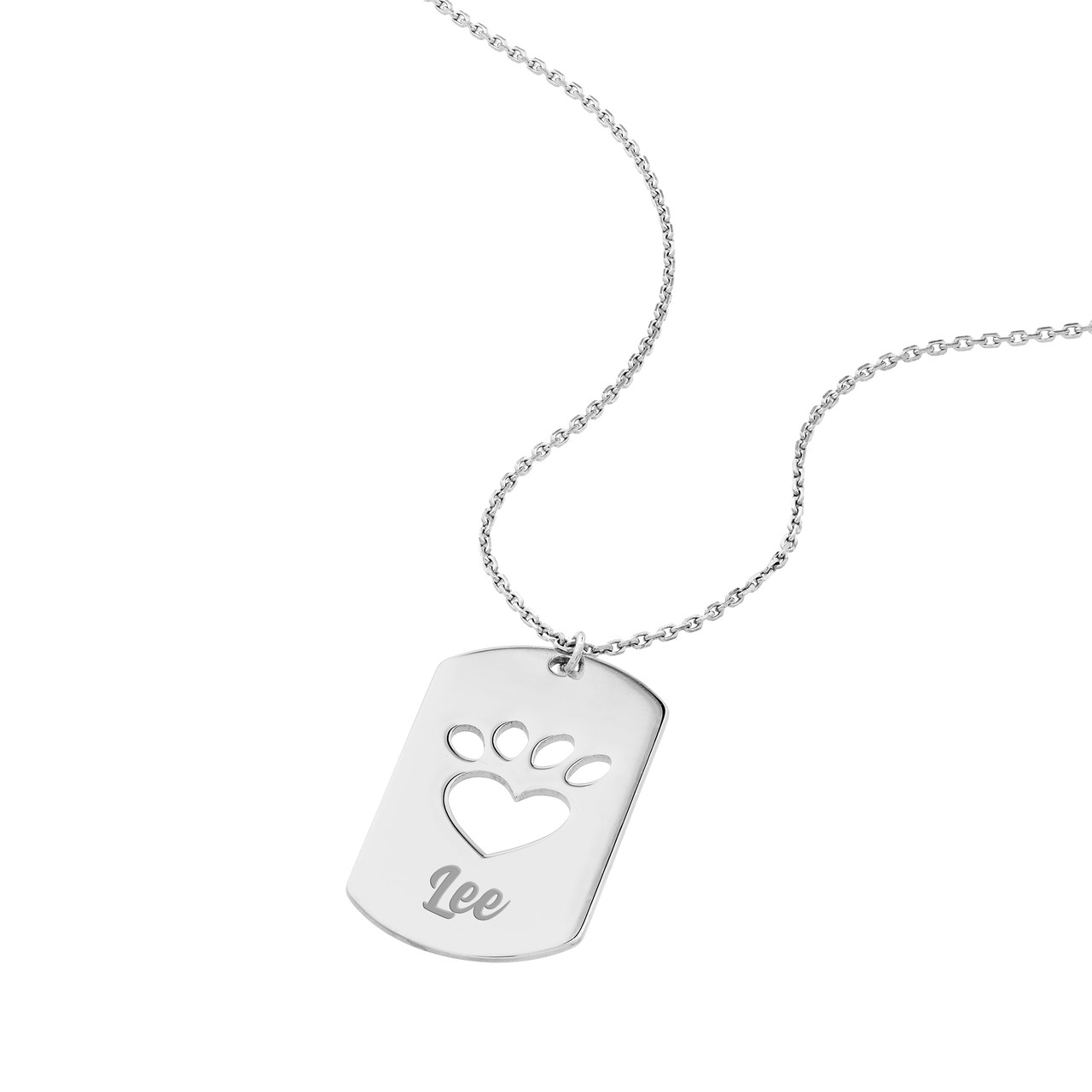 18-Inch Plated Sterling Silver Dog Tag Necklace with Paw