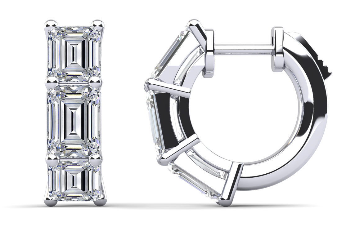 Six Stone Emerald Cut Diamond Huggie Hoop Earrings 1.25 Carat Total Weight