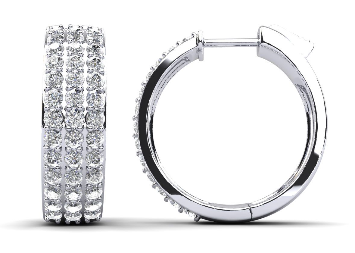 Three Rows Diamond Hoops Earrings 1.95 Carat Total Weight