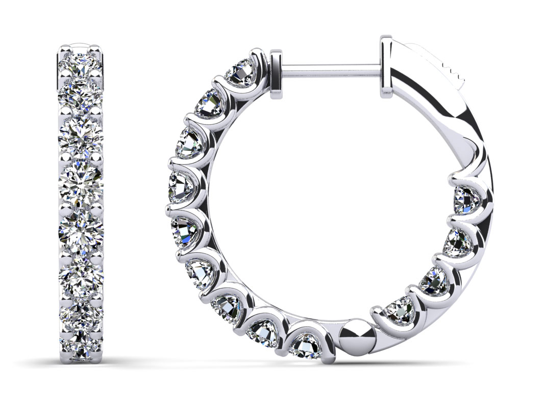 U Shape Prong Diamond Medium Hoop Earrings 1.38 Carat Total Weight