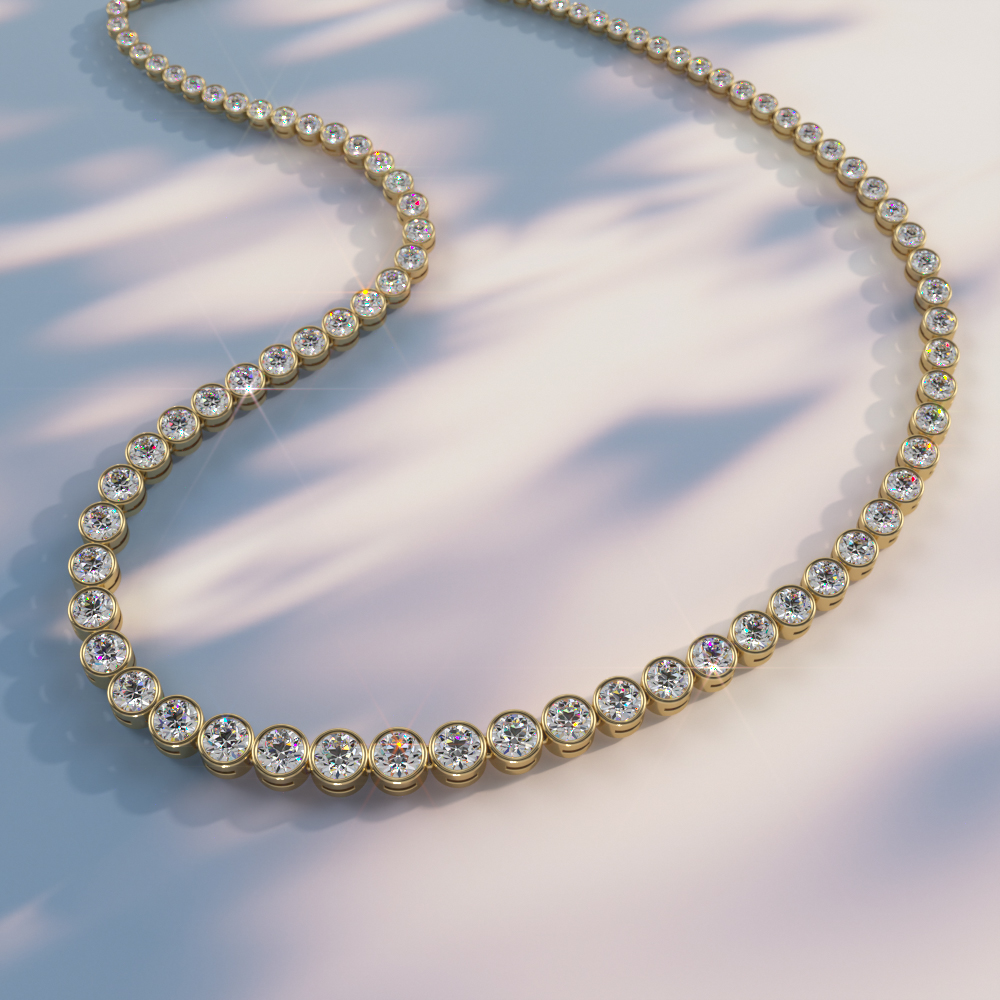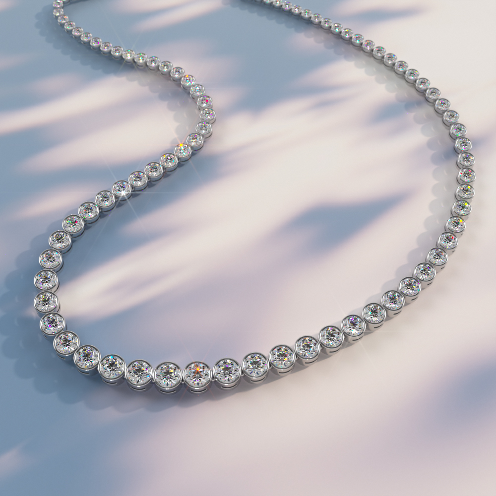 16-Inch Brilliant Bezel Set Diamond Tennis Necklace 5.08 Carat Total Weight