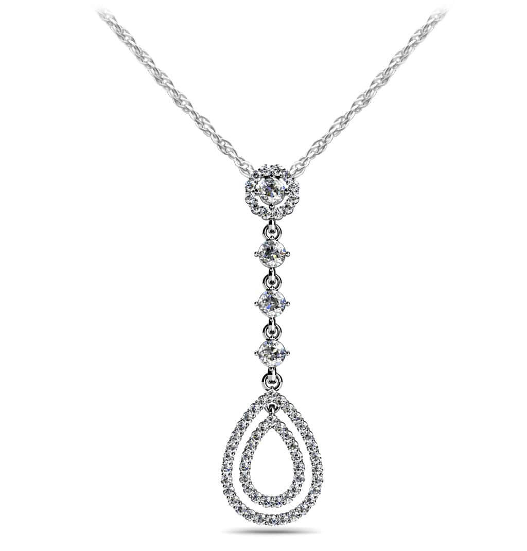 Four Stone Drop Halo Leaf Pendant 1.04 Carat Total Weight