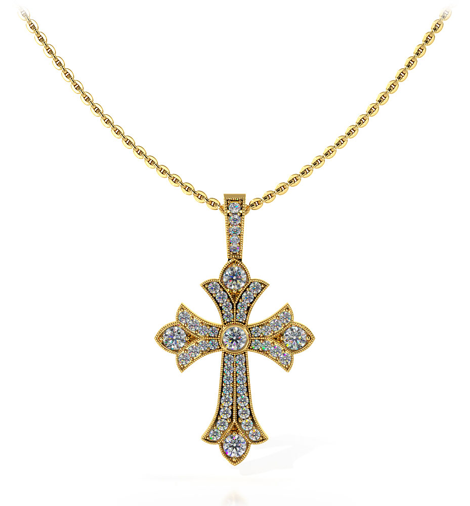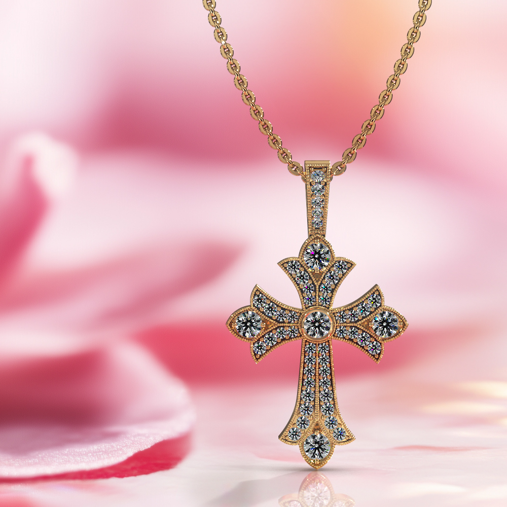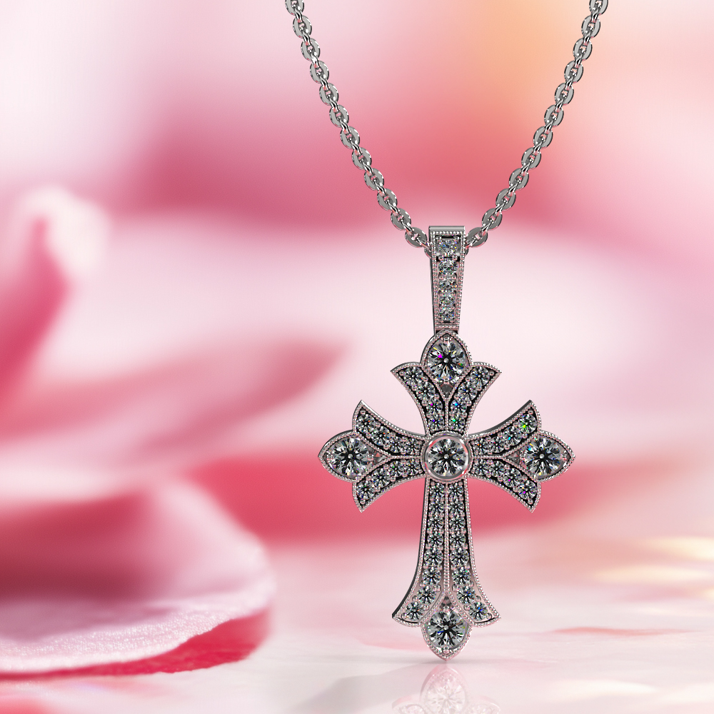 Vintage Inspired Diamond Cross Pendant with Milligrain Edges 5/8 Carat Total Weight