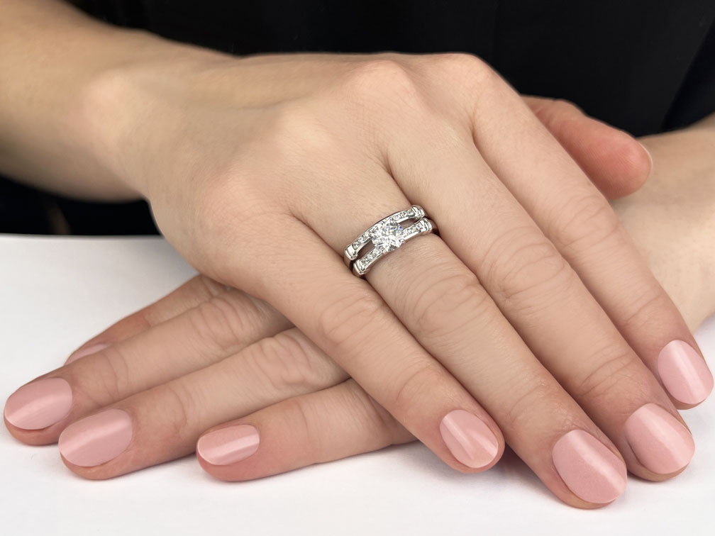 Channel Belt Bridal Set Ring 0.8 Carat Total Weight