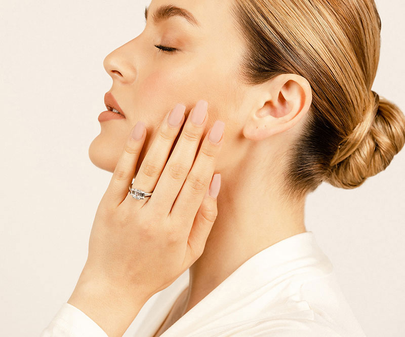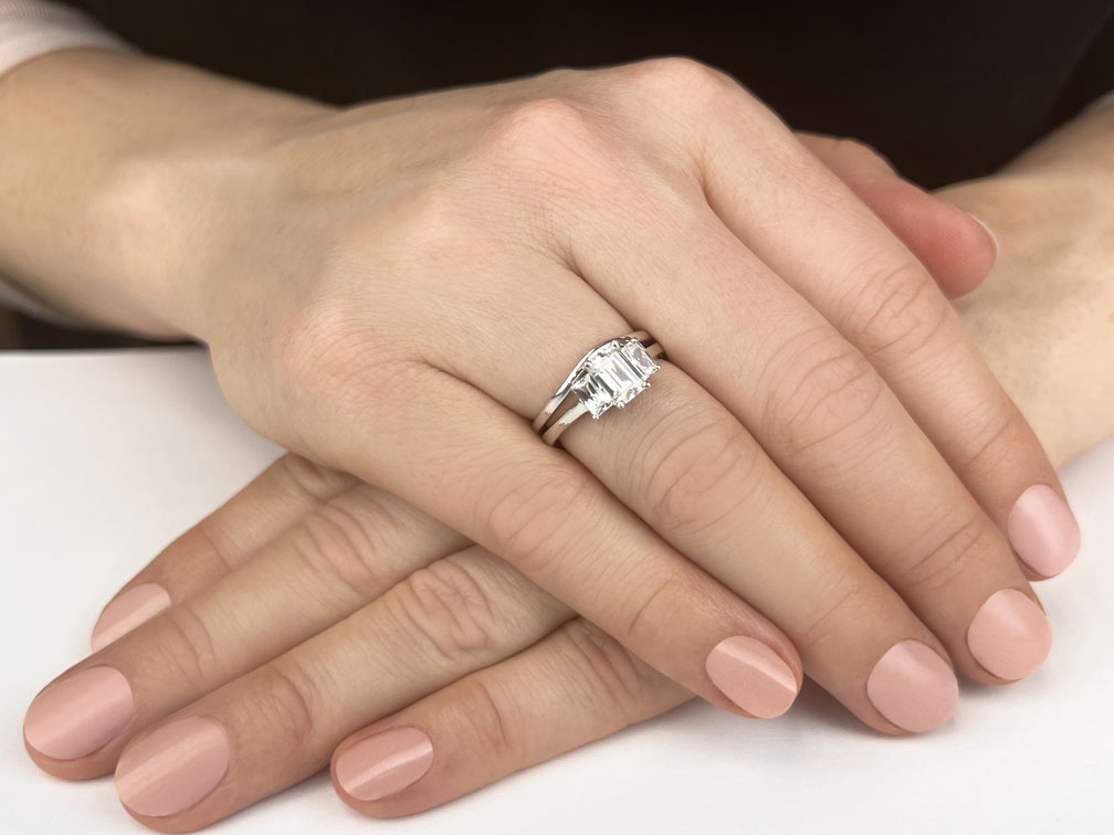 Elegant Three Stone Emerald Engagement Ring .90 Carat Total Weight