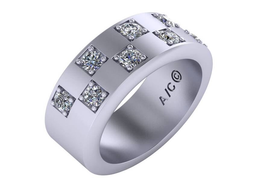 Mens Checkerboard Diamond Ring 0.56 Carat Total Weight