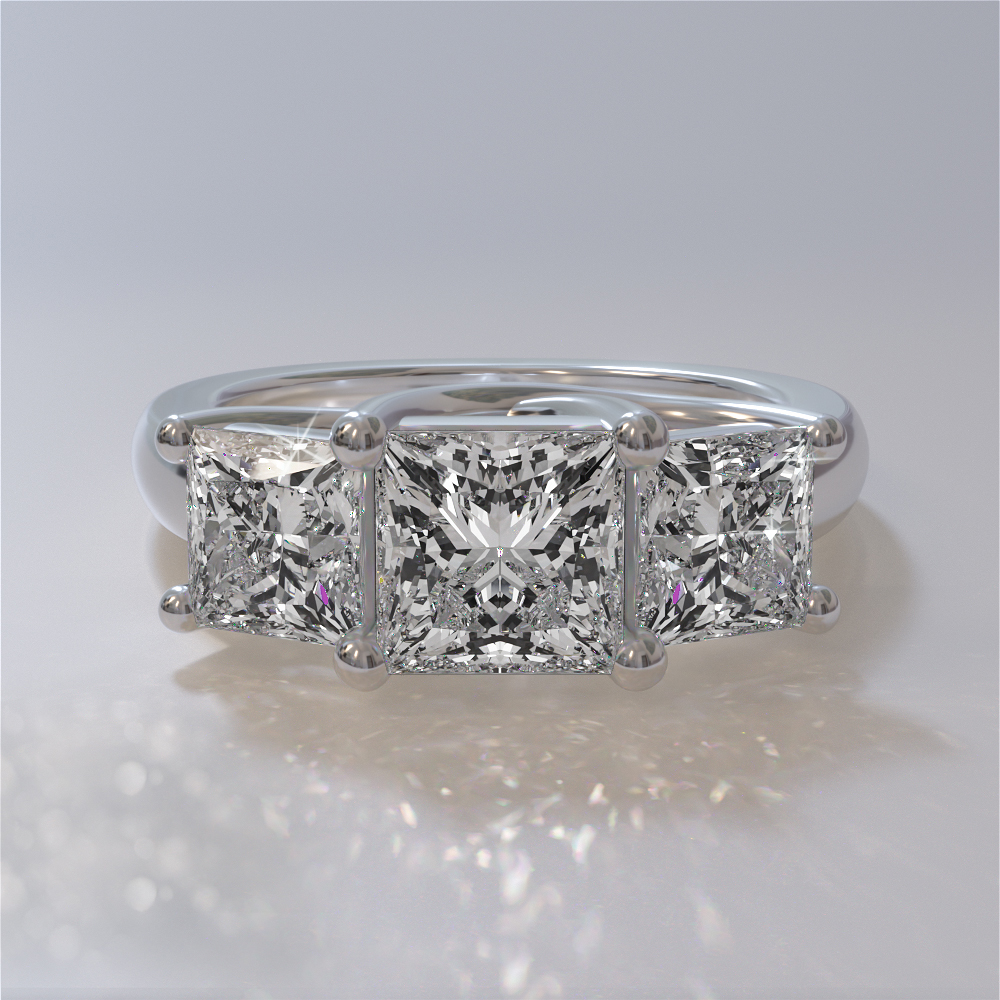 Princess Cut Swirl Three Stone Engagement Ring 1.0 Carat Total Weight