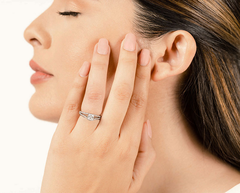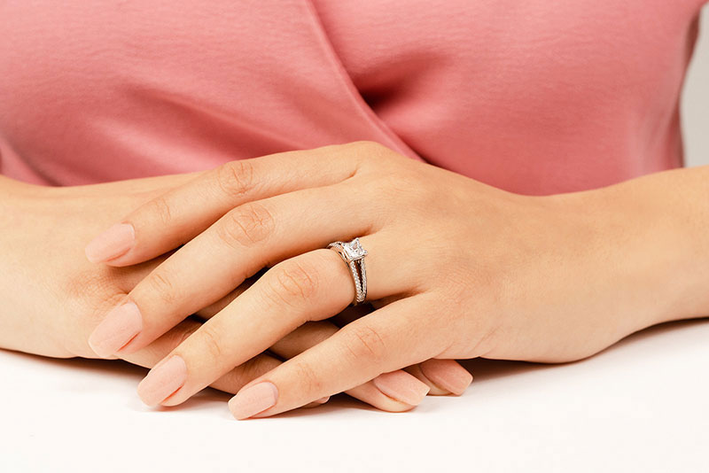 Split Shank Princess Cut Engagement Ring 0.84 Carat Total Weight