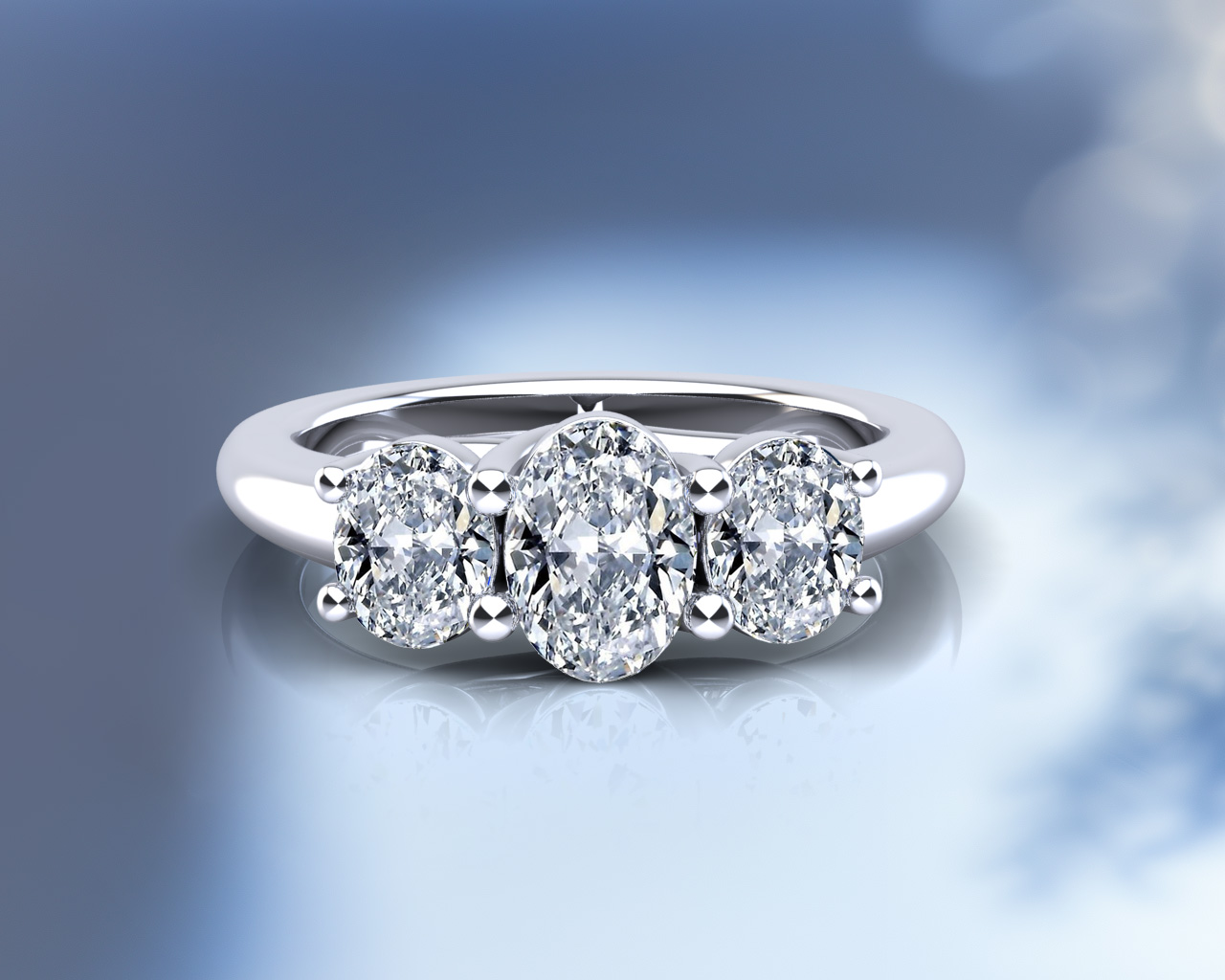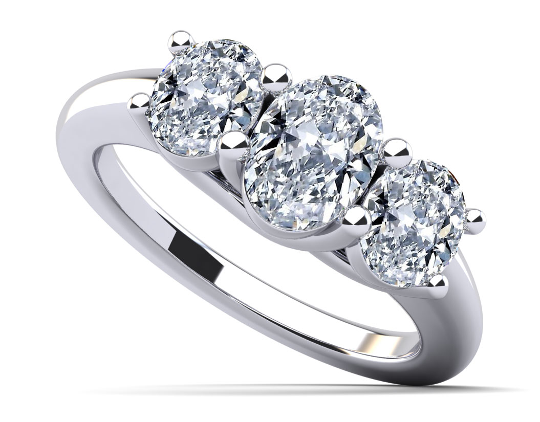 Three Stone Oval Diamond Engagement Ring 1.0 Carat Total Weight